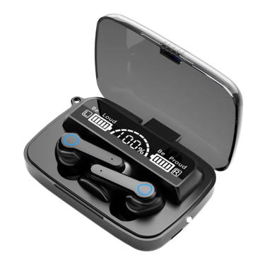 A case moderna com visor digital LED exibe o nível da bateria dos fones e da base, garantindo praticidade no dia a dia. Além disso, a bateria de longa duração permite horas de uso contínuo sem interrupções.
