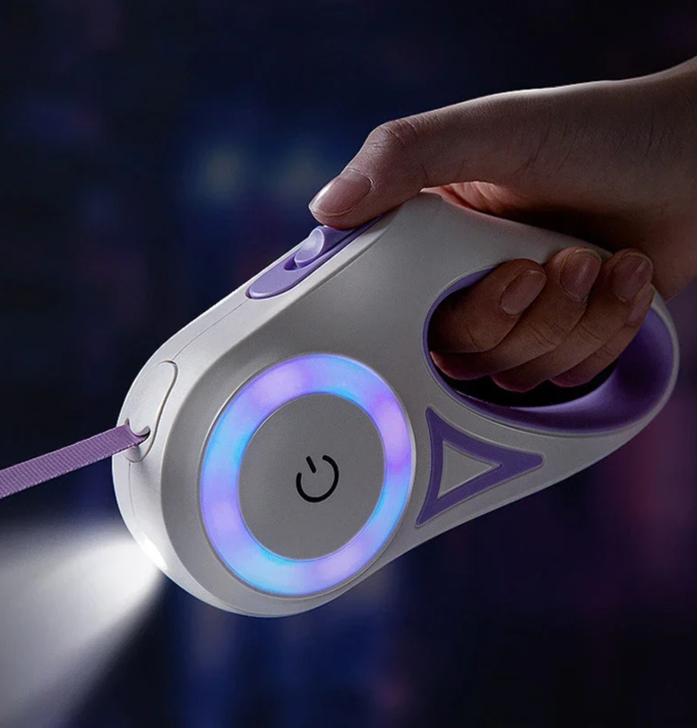 Com sistema retrátil resistente e iluminação em LED integrada, essa guia é perfeita para caminhadas noturnas ou em dias nublados, permitindo que você visualize seu pet e seja visto por veículos e ciclistas. O design ergonômico proporciona firmeza na pegada e mais conforto para longos passeios.