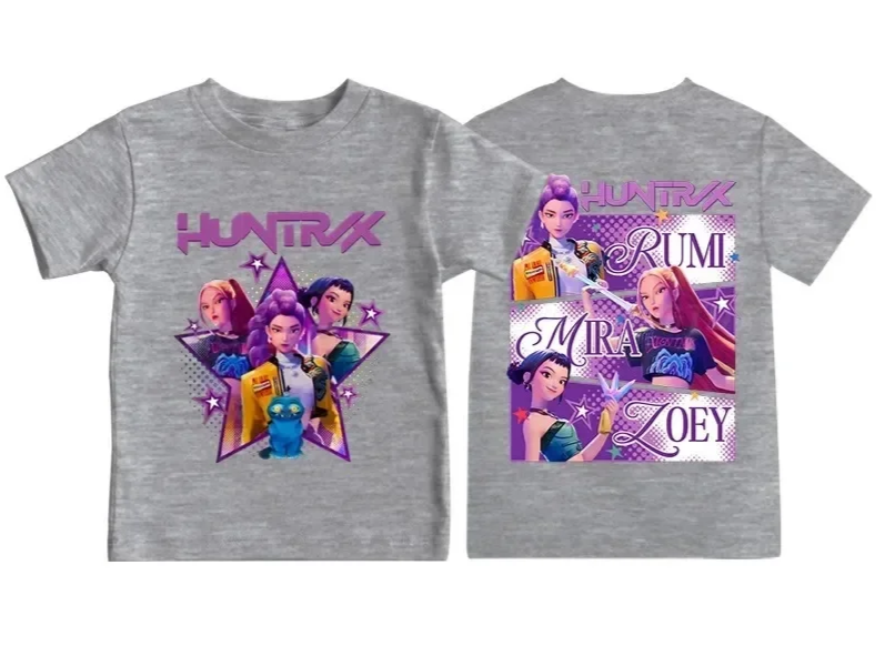 1 T-Shirt Infantil Demon Hunters K-Pop – Manga Curta Estampada
